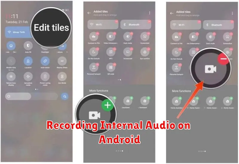 Some manufacturers, like Samsung, include a built-in screen recorder with an internal audio recording option. Check your device’s quick settings panel for a “Screen recorder” or similar icon. If present, look for audio source options within the recorder’s settings. You might see choices like “Internal audio,” “Media sounds,” or “Game sounds.”
