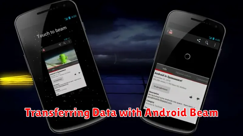 Android Beam provides a simple way to transfer small amounts of data between two NFC-enabled Android devices. This feature utilizes NFC to establish a Bluetooth connection, allowing for slightly larger file transfers compared to direct NFC. Ensure both devices have NFC and Android Beam enabled in their settings.